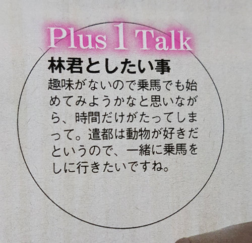在問「 想一起做的事情是什麼? 」的時候是遣都先回答的。「 遣都是怎麼回答的? 」「 絞盡腦汁才想出來的( 笑 ) 」兩人相視而笑,看起來關係非常好的樣子呢 ~