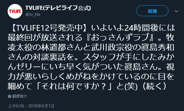 似乎提早察覺到工作人員手中橘子果凍的真島さん,明明是因為視力太差的關係才戴上眼鏡,卻還是瞇著雙眼問:「 那是什麼東西? 」( 笑 )